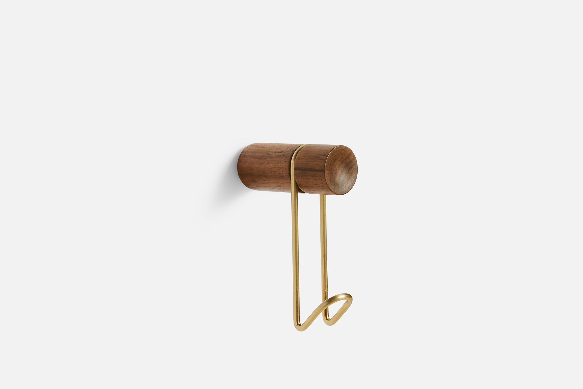 Appendiabiti da parete Around, S, noce laccato opaco - ottone