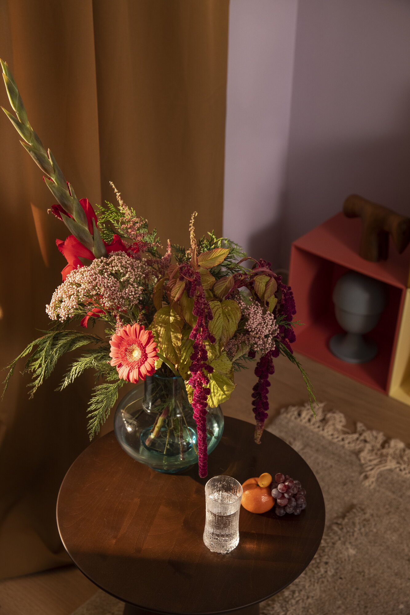 I materiali più importanti per Wirkkala come artista furono il legno e il vetro ed egli non smise mai di esplorare le possibilità che questi materiali offrivano. Wirkkala ottenne il successo a livello mondiale nel 1951 alla Triennale di Milano, dove ricevette tre premi Grand Prix: per l’architettura, per il design del vetro e per le sculture di legno. Wirkkala era un autodidatta in molti campi, ed anche nel design del vetro. Nel 1946 egli disegnò uno dei suoi lavori più famosi, il vaso Kantarelli, per Iittala. Wirkkala creò per Iittala molti pezzi d’arte, per la maggior parte dei quali ricevette premi alle Triennali di Milano degli anni ’50.