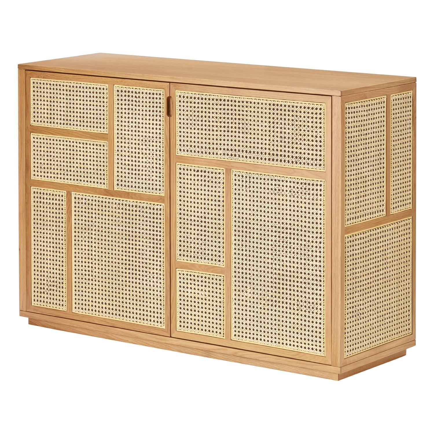 La credenza Air, disegnata da Mathieu Gustafsson per Design House Stockholm, unisce un'espressione grafica forte e un intreccio in canna attraverso il quale la luce filtra. La trama in canna fa sì che la credenza sia ventilata, rendendola così perfetta per abiti, tessili e apparecchi elettronici. Inoltre sul fondo c'è un pratico foro per i cavi elettrici. Nonostante il suo design funzionale, Air è un elegante elemento d'arredo soprattutto al centro della stanza.