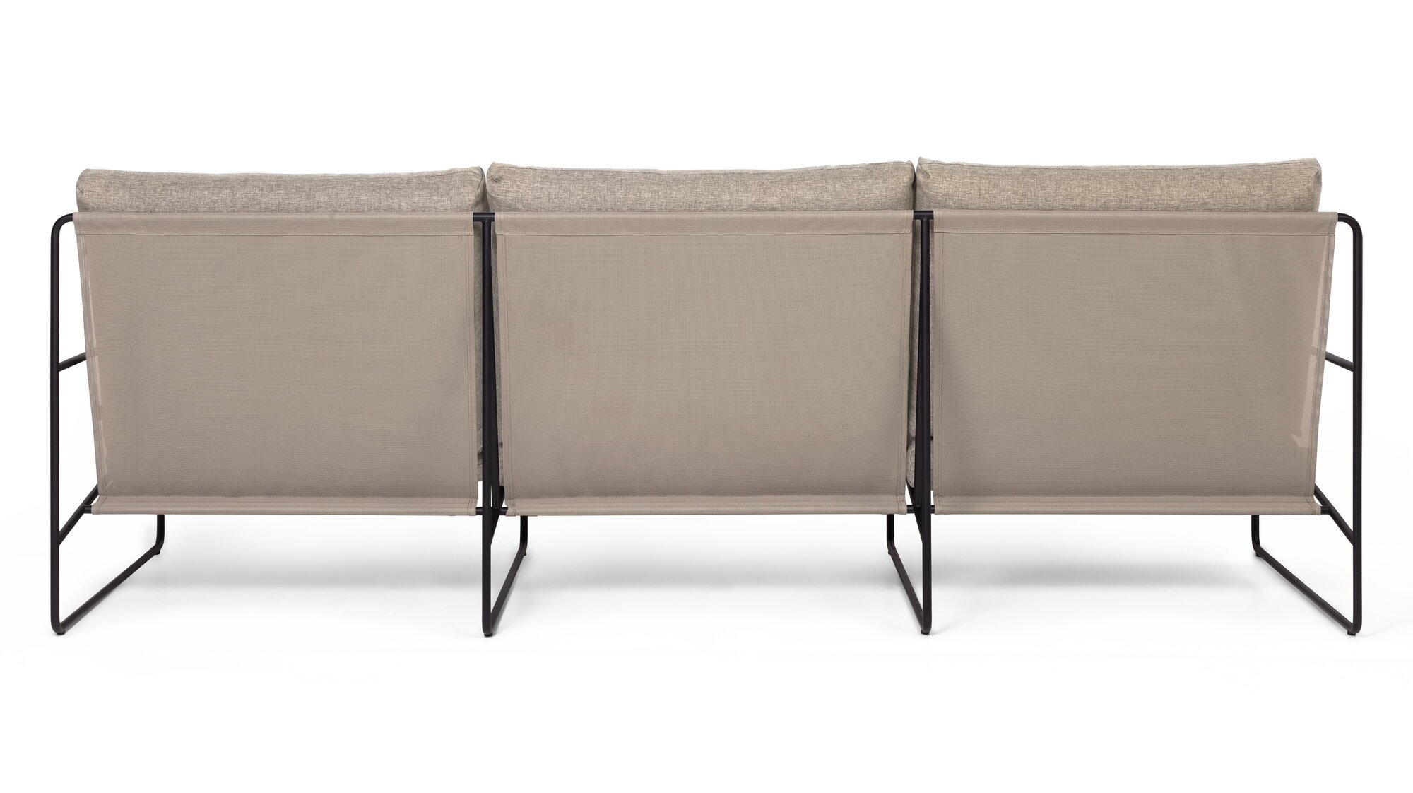 Il divano a 3 posti Desert fa parte della collezione Desert di Ferm Living che si ispira alla classica sdraio da giardino. Nelle mani di Ferm Living la sedia si è trasformata in un divano e ha ricevuto una forma geometrica basata su un elegante telaio di metallo e una rilassata seduta bassa rifinita da cuscini imbottiti.