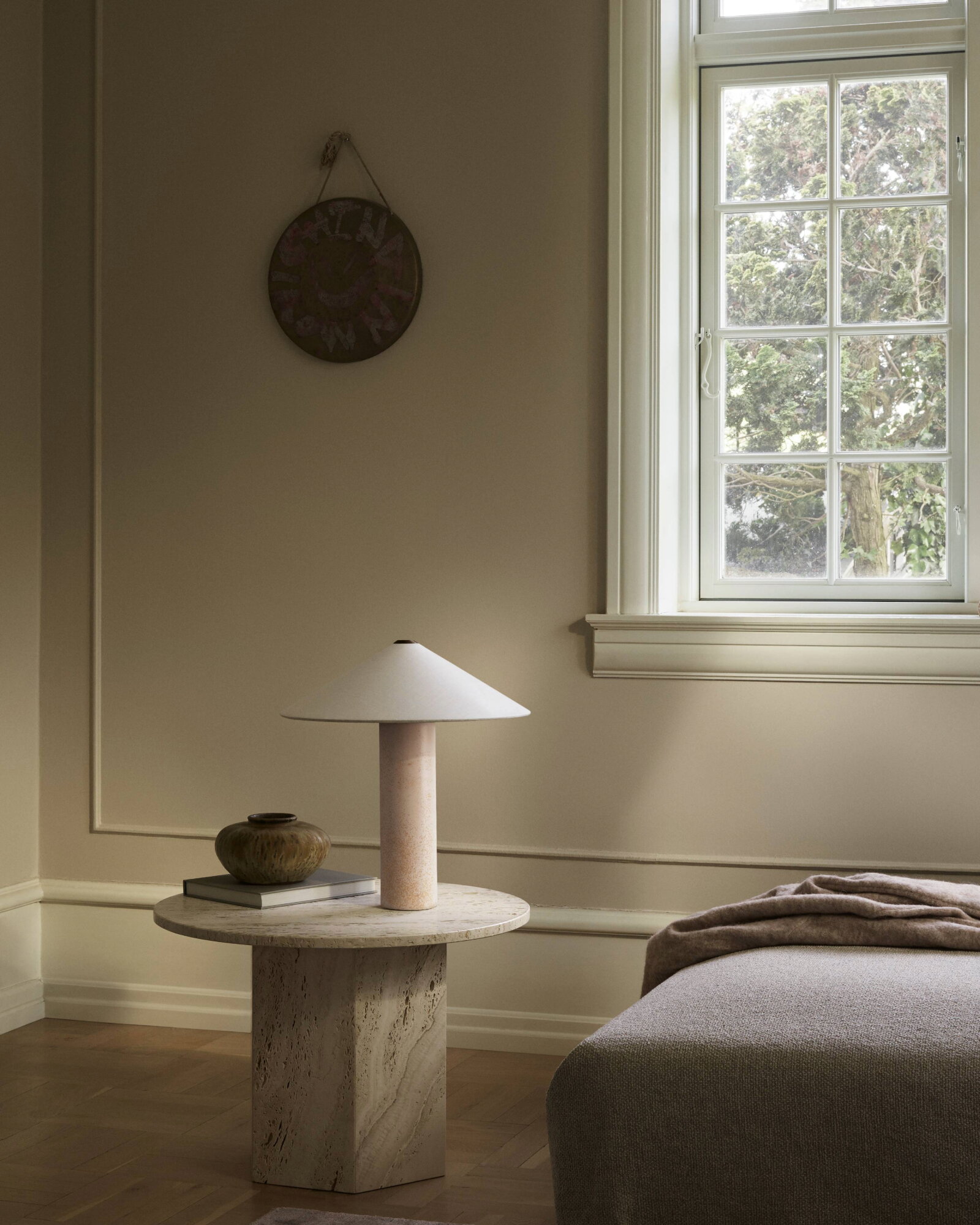 La lampada da tavolo Futé di LYFA è una celebrazione di materiali che si completano attentamente a vicenda: un'intrigante base in ceramica incontra un affascinante paralume in tessuto e seducenti dettagli in metallo. Progettata dal duo di designer GamFratesi, ovvero Stine Gam ed Enrico Fratesi, la lampada è adatta per illuminare tavolini, mensole o comodini.