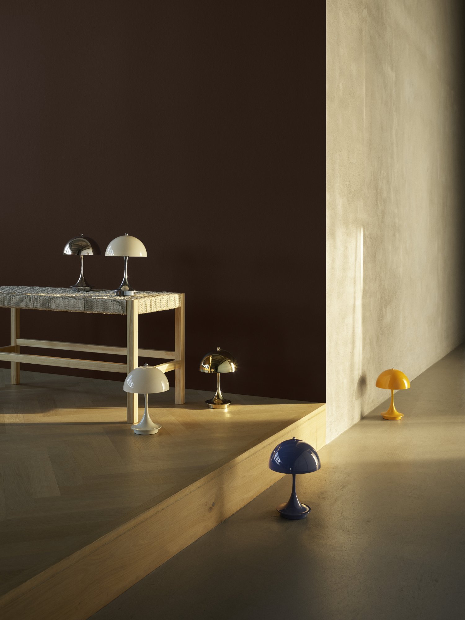 Verner Panton (1926-1998) è considerato uno dei designer danesi di mobili e d'interni più influenti del 20mo secolo. Panton studiò prima ingegneria architettonica a Odense e poi architettura presso la Royal Danish Academy of Art di Copenaghen, dove di laureò nel 1951. Verner Panton è famoso per la sua personalità ispiratrice e colorata - una persona unica con un senso speciale per colore, forma, funzione della luce e spazio.
