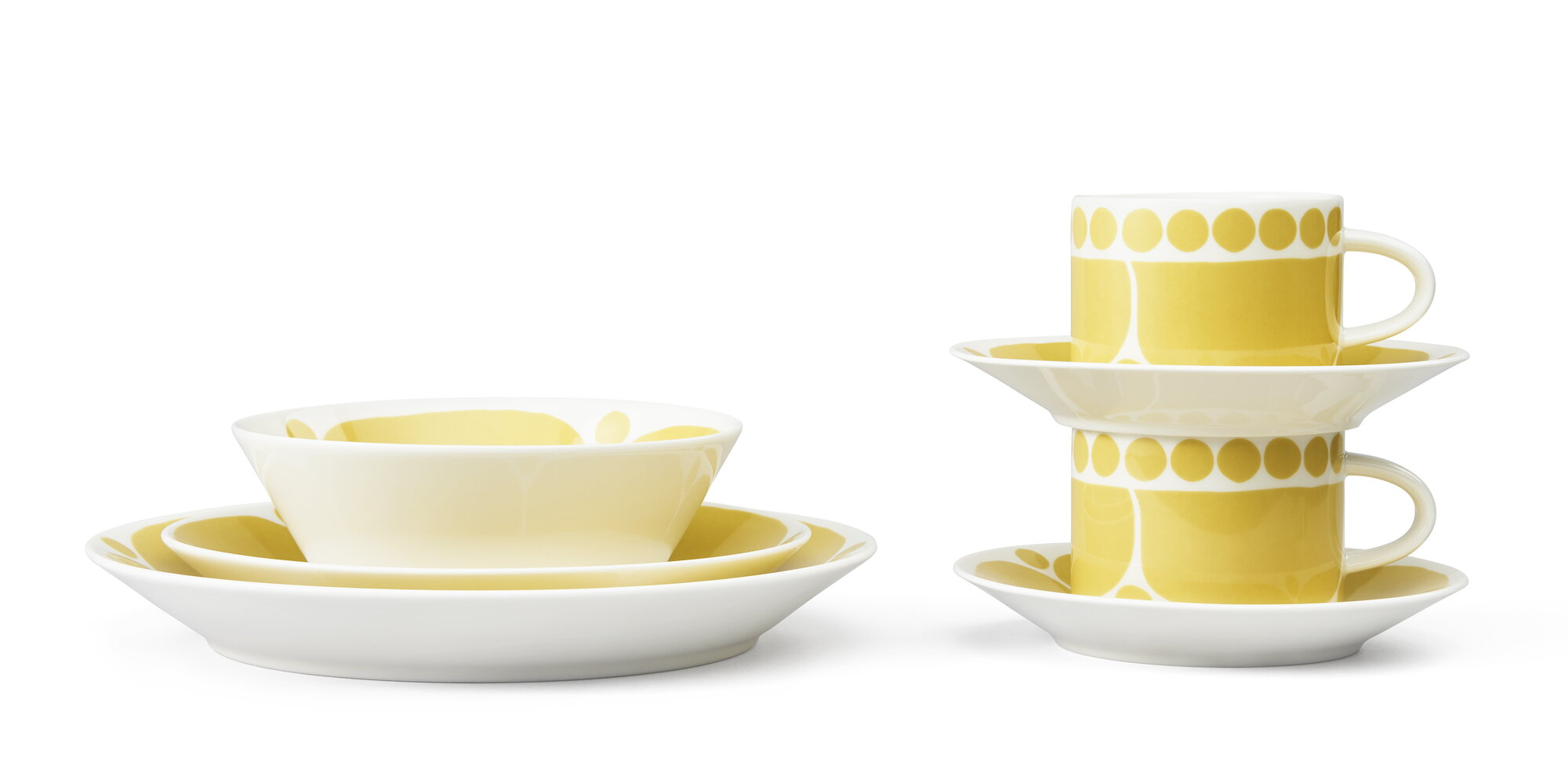 Disegnata nel 1971 da Birger Kaipiainen, che ha disegnato anche il popolare servizio di stoviglie Paratiisi, la collezione Sunnuntai è decorata con un motivo retro astratto che ricorda un fiore giallo. Con il delizioso Sunnuntai, parola finlandese per domenica, porterete un raggio di sole in qualsiasi tavola.