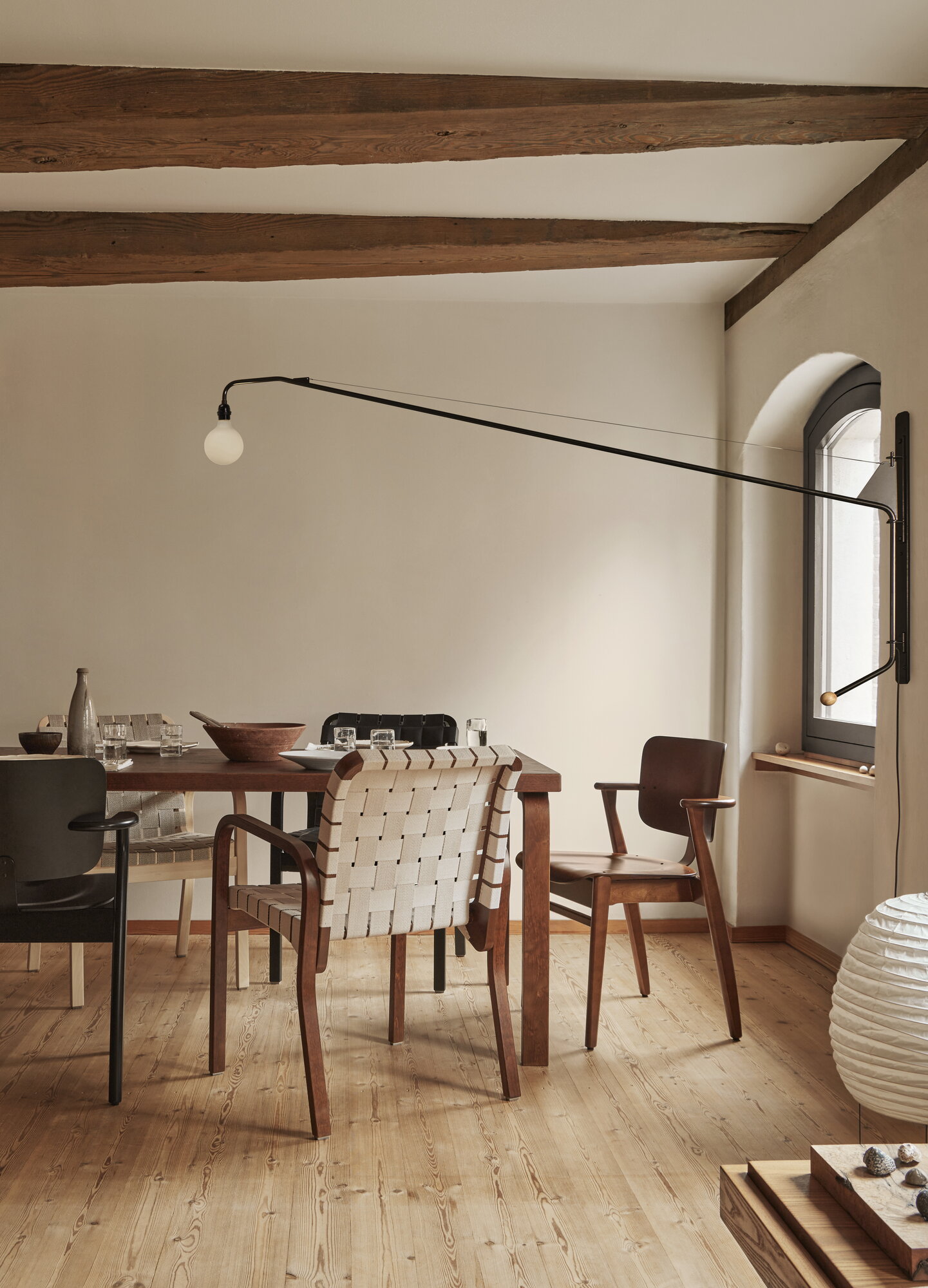 La poltrona Aalto 45 di Artek, originariamente progettata da Alvar Aalto nel 1947, è una poltrona raffinata nota per la sua versatilità e il suo aspetto senza tempo. Realizzata con tessitura di lino, la poltrona 45 è ugualmente a suo agio attorno a un tavolo da pranzo, a una scrivania o come un accogliente angolo di relax. La poltrona 45 era una delle preferite dello stesso Aalto, che la usava nel suo studio di architettura.