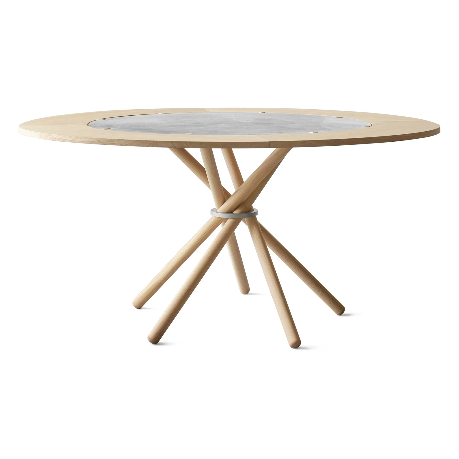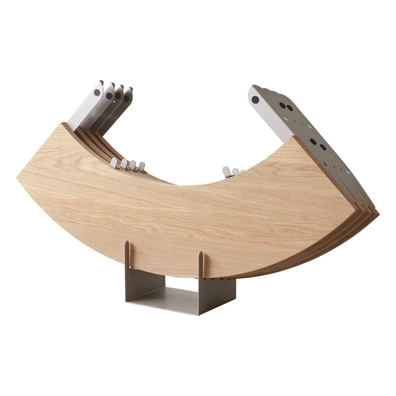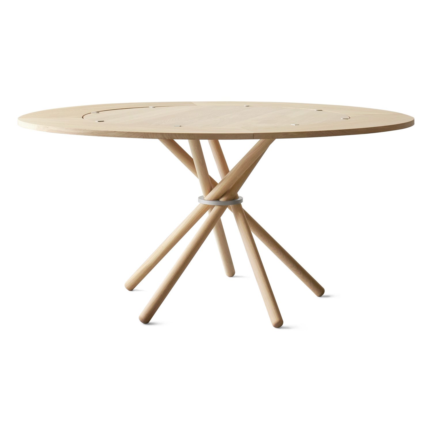 Le prolunghe per il tavolo da pranzo rotondo Hector di Eberhart Furniture consentono di aumentare il suo diametro da 105 cm a 155 cm, ospitando comodamente fino a otto persone. Queste eleganti estensioni in rovere sono facili da fissare al tavolo e si tolgono in un attimo. Una volta tolte, possono essere riposte ordinatamente in un supporto apposito, incluso nella confezione.