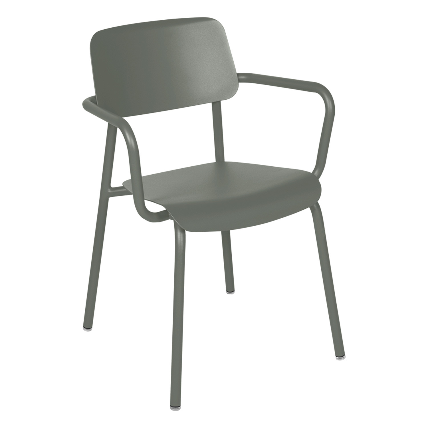 La sedia con braccioli Studie di Fermob è un’interpretazione moderna delle tradizionali sedie da scuola, il che spiega il nome Studie. Ma non preoccupatevi: anche chi non amava particolarmente sedersi a un banco di scuola riuscirà a rilassarsi su questa sedia. La seduta curva e il comodo schienale si adattano alla forma del corpo, offrendo ulteriore comfort. Disegnata da Tristan Lohner, la sedia da giardino è realizzata in alluminio, materiale che la rende leggera e facilmente trasportabile. Inoltre, le sedie Studie sono impilabili, per cui occupano poco spazio quando non servono. La versatile seduta è adatta per aree all’aperto come balconi, giardini o terrazze, ma sa donare un’atmosfera rilassata e sofisticata anche in una cucina casalinga o in sala da pranzo. Forse la sedia Studie riuscirà persino a rendere più gradevoli i vostri ricordi della scuola!