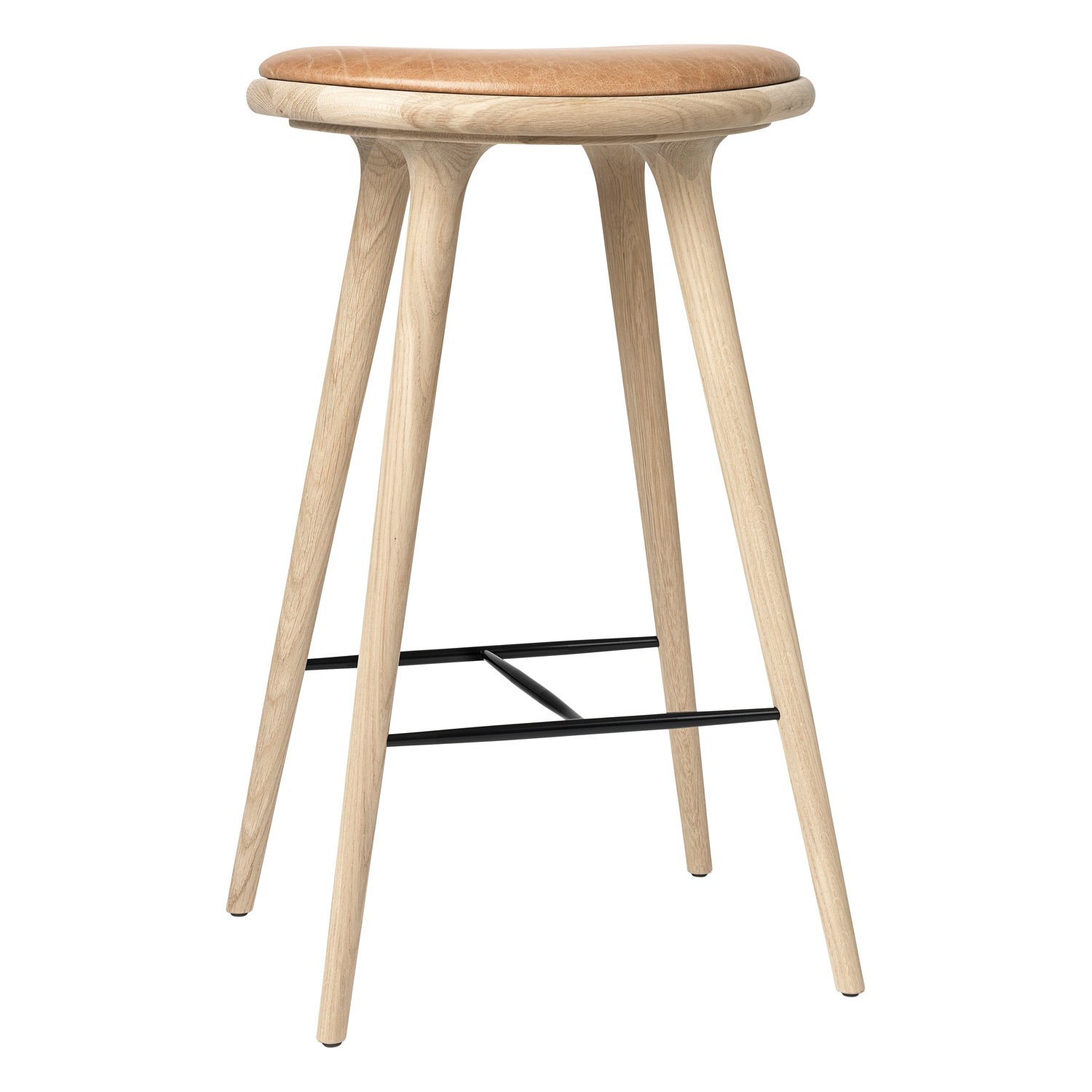 Lo sgabello alto di Mater, descritto come un nuovo classico danese, è stato disegnato dallo studio di design danese Space Copenhagen. Il design elegante e organico si adatta bene ai banconi dei bar sia domestici che commerciali. Lo sgabello alto è realizzato in rovere massello certificato FSC con finitura sapone e presenta un sedile rivestito in pelle. Inoltre, lo sgabello è dotato di un poggiapiedi in legno.