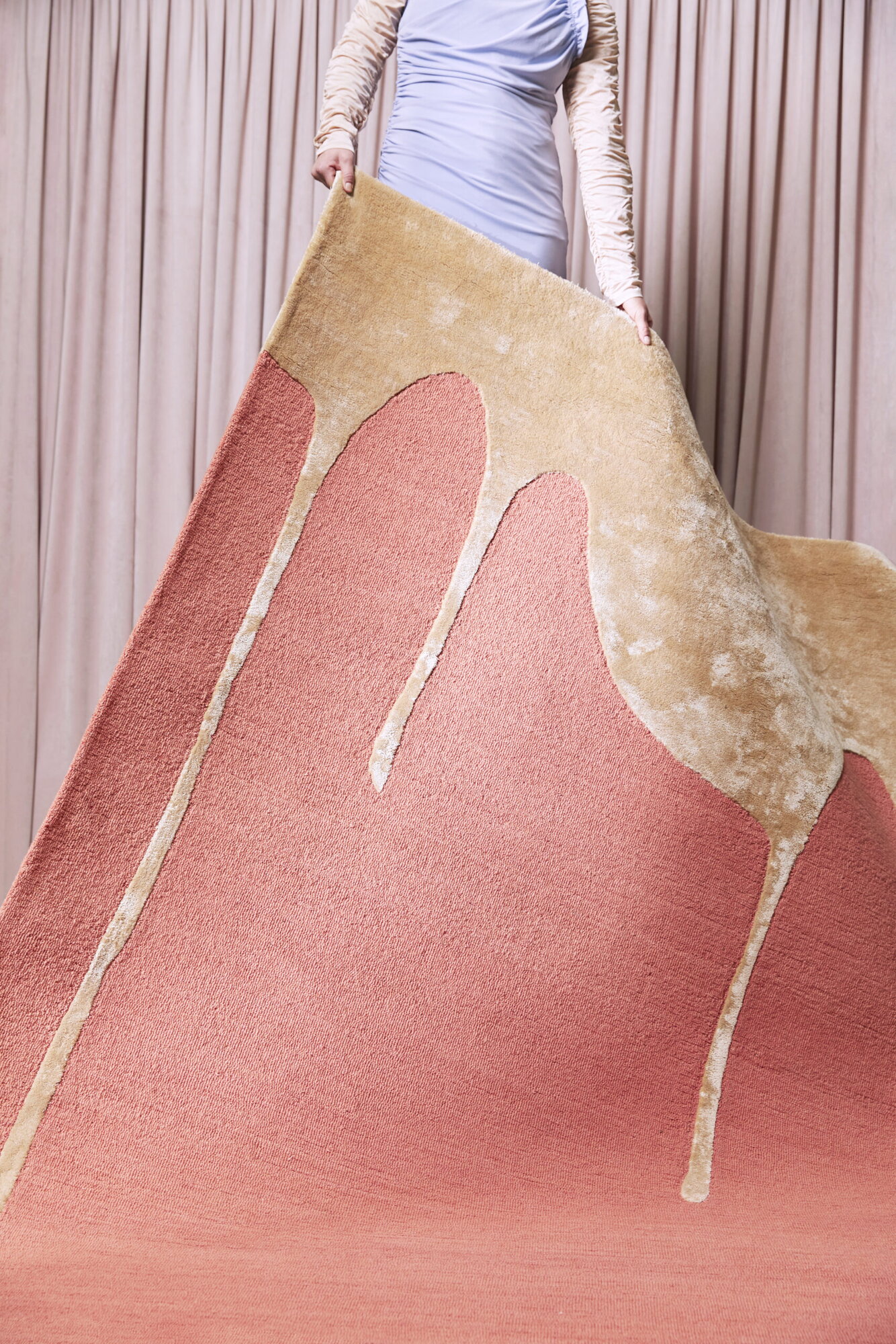 Il tappeto Sula di Finarte presenta un affascinante motivo dorato che sembra spostarsi sulla superficie, come se l’intero tappeto stesse sciogliendosi. L’elegante motivo non solo evoca immagini vivide, ma unisce anche due materiali diversi: il tencel, tufted e setoso, e la lana, tufted e morbida. Nonostante il design dinamico, il look complessivo rimane semplicemente elegante, rendendo il tappeto Sula adatto a spazi e utilizzi di vario tipo.