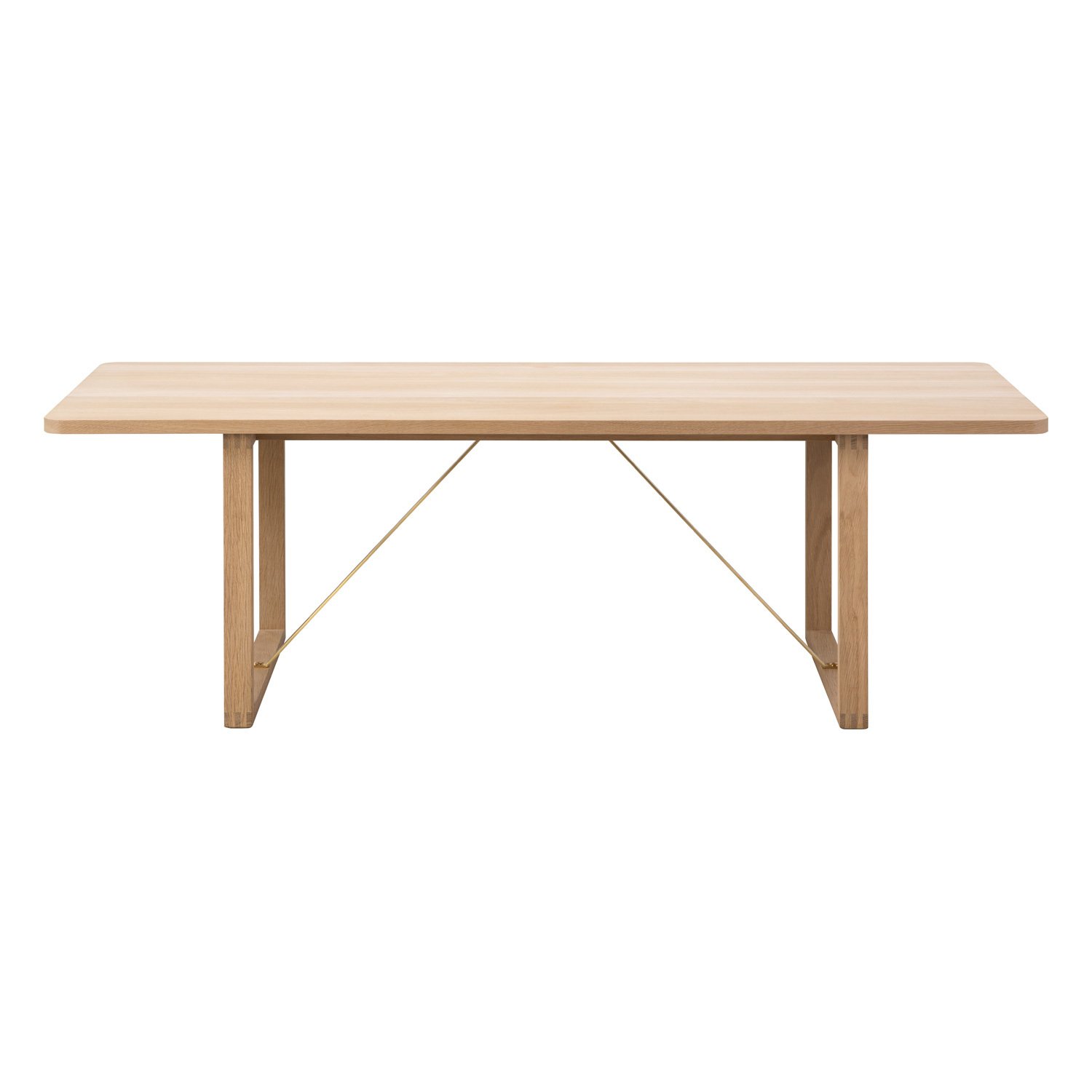 Il modello BM67 di Fredericia è un tavolino da salotto dallo stile minimalista disegnato da Børge Mogensen, maestro del design danese. In una combinazione perfetta data dal calore naturale del legno e la sofisticata lucentezza dell’ottone, il tavolino da salotto è composto da un piano in rovere trattato con sapone sostenuto da una base a slitta e asticelle in ottone. Queste ultime creano un affascinante contrasto con le linee pulite e l’armonia visiva offerta dal design. E non è tutto: la superficie in legno saponato e l’ottone svilupperanno nel tempo una caratteristica patina che donerà ulteriore carattere all’elegante design del tavolo.