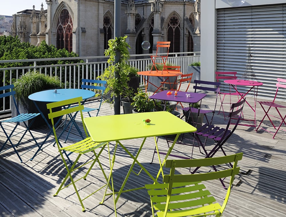 I mobili da giardino Bistro di Fermob sono realizzati secondo le esigenze di oggi sull'originale modello brevettato nel 1889. Anche se in commercio è possibile trovare sedie pieghevoli simili, i mobili da giardino prodotti da Fermob sono quelli originali. Le sedie e i tavoli pieghevoli divennero popolari alla fine del 1800 soprattutto tra i venditori di limonata, in quanto era facile e veloce metterli via e pertanto non era necessario pagare la licenza. La bellissima serie Bistro è stata aggiornata con il tempo, ma è comunque ancora prodotta secondo i modelli originali. Questi mobili da giardino resistenti alle intemperie e dai colori che si mantengono invariati anno dopo anno sono popolari in tutto il mondo. I mobili Fermob sono prodotti in Francia, nella fabbrica Fermob, e su ogni pezzo si trova il nome di chi lo ha controllato. Questo mostra l'impegno di Fermob nel garantire la qualità di ogni pezzo che esce dalla sua fabbrica.